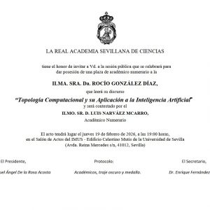 Sesión pública que se celebrará para dar posesión de una plaza de académico numerario a la ILMA. SRA. Da. ROCÍO GONZÁLEZ DÍAZ, que leerá su discurso “Topología Computacional y su Aplicación a la Inteligencia Artificial” y será contestado por el ILMO. SR. D. LUIS NARVÁEZ MCARRO, Académico Numerario El acto tendrá lugar el jueves 19 […]