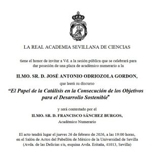 Sesión pública que se celebrará para dar posesión de una plaza de académico numerario al ILMO. SR. D. JOSÉ ANTONIO ODRIOZOLA GORDON, que leerá su discurso “El Papel de la Catálisis en la Consecución de los Objetivos para el Desarrollo Sostenible” y será contestado por el ILMO. SR. D. FRANCISCO SÁNCHEZ BURGOS, Académico Numerario El […]