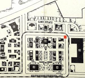 Desde las ventanas de las inmensas aulas de dibujo de Aparejadores, situadas hacia el lado de poniente de aquella Bauhaus de pueblo (proyecto de 1960 de Fernández Huidobro y Gómez Stern y dirección de García Diéguez), podíamos ver tres edificios, una calle y algunas ruinas; uno era el antiguo Pabellón Regional de las Diputaciones Vascongadas (1928, nº 41 del plano de arriba, entonces hospital de Aviación, otro era y es el Colegio Mayor Hernando Colón, de Gómez Millán, inaugurado en 1949 sobre la plaza de los Conquistadores; eran nuestros vecinos al otro lado de un camino terrizo que desde 1955 estaba dedicado a la mística Sor Gregoria de Santa Teresa; en nuestra manzana estaban la futura Escuela de Arquitectura, y las ruinas dispersas de algunos de los pabellones provinciales de la Exposición Iberoamericana.