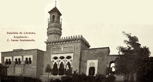 Estos habían sido una colección de engendros diseñados en 1928 por arquitectos vinculados a las respectivas provincias y construidos a toda prisa y mala manera en 1929; hacia el norte estaban los de Castilla y León (Nº 40) y Málaga (Nº 39), ocupando el espacio del Fat Lab y el salón de actos de Arquitectura; le seguían los refritos provinciales de Granada (Nº 45), Cádiz (Nº 44) y Huelva (Nº 43), ubicados en lo que es el volumen principal de Arquitectura; en el centro de la manzana estaba el pabellón de Turismo (1927, de Traver y Tomás, nº 20) que hoy es Ingeniería de la Edificación, que también ocupa el sitio del pabellón de Jaén (Nº 47); el CITIUS se hizo a comienzos del siglo XXI en el solar de los de Asturias (Nº 48) y Murcia (Nº 52). Y en la esquina sureste de la manzana estaba el pabellón de Córdoba (nº 51), cuya torre pervive, pues ahora es el aparcamiento que nos rodea, ya que hasta llegar a la actual esquina con la calle Profesor García González había una parte ajardinada, que es donde vemos la sede de la Academia (Cuadrado rojo).