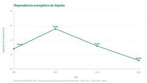 La conclusión es clara: la estructura energética española se encuentra en un proceso intenso de incorporación de renovables, pero continúa manteniendo una base fósil muy relevante y un grado notable de dependencia de terceros para su abastecimiento energético, como muestra la Figura 1.