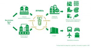 Y allí donde la electrificación directa no basta, esa misma electricidad puede alimentar la producción de hidrógeno y de sus derivados, capaces de sustituir gas natural, productos petrolíferos o materias primas fósiles importadas, en lo que se denomina electrificación indirecta. En este contexto el papel de los RFNBO (Renewable Fuels of Non Biological Origin) es absolutamente esencial, como muestra la Figura 4. Desde esta perspectiva, el recurso a renovables no solo descarboniza y desfosiliza: también reduce exposición exterior y vulnerabilidad geopolítica, en línea con la lógica estratégica de la citada comunicación REPowerEU.