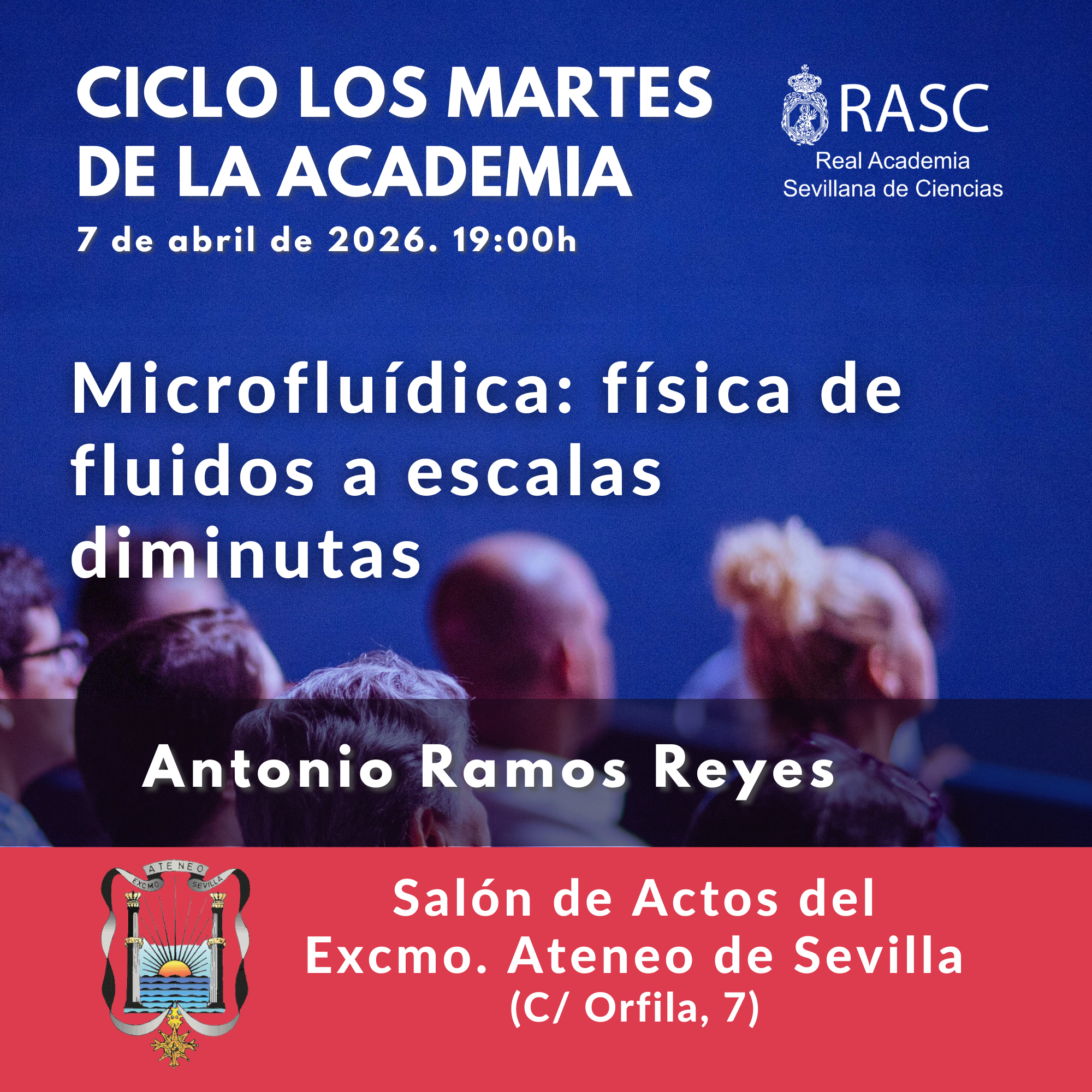 «El Secretario de la Real Academia Sevillana de Ciencias le saluda y le envía información sobre la conferencia que, dentro del ciclo “Los Martes de la Academia”, pronunciará el Académico  José Antonio Ramos Reyes el martes 28 de abril a las 19:00 en el Salón de Actos del Excmo. Ateneo de Sevilla.»