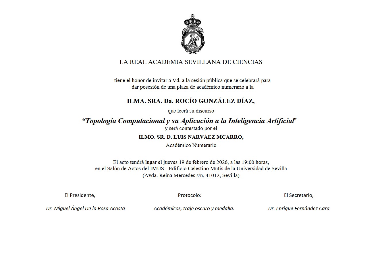 Sesión pública que se celebrará para dar posesión de una plaza de académico numerario a la ILMA. SRA. Da. ROCÍO GONZÁLEZ DÍAZ