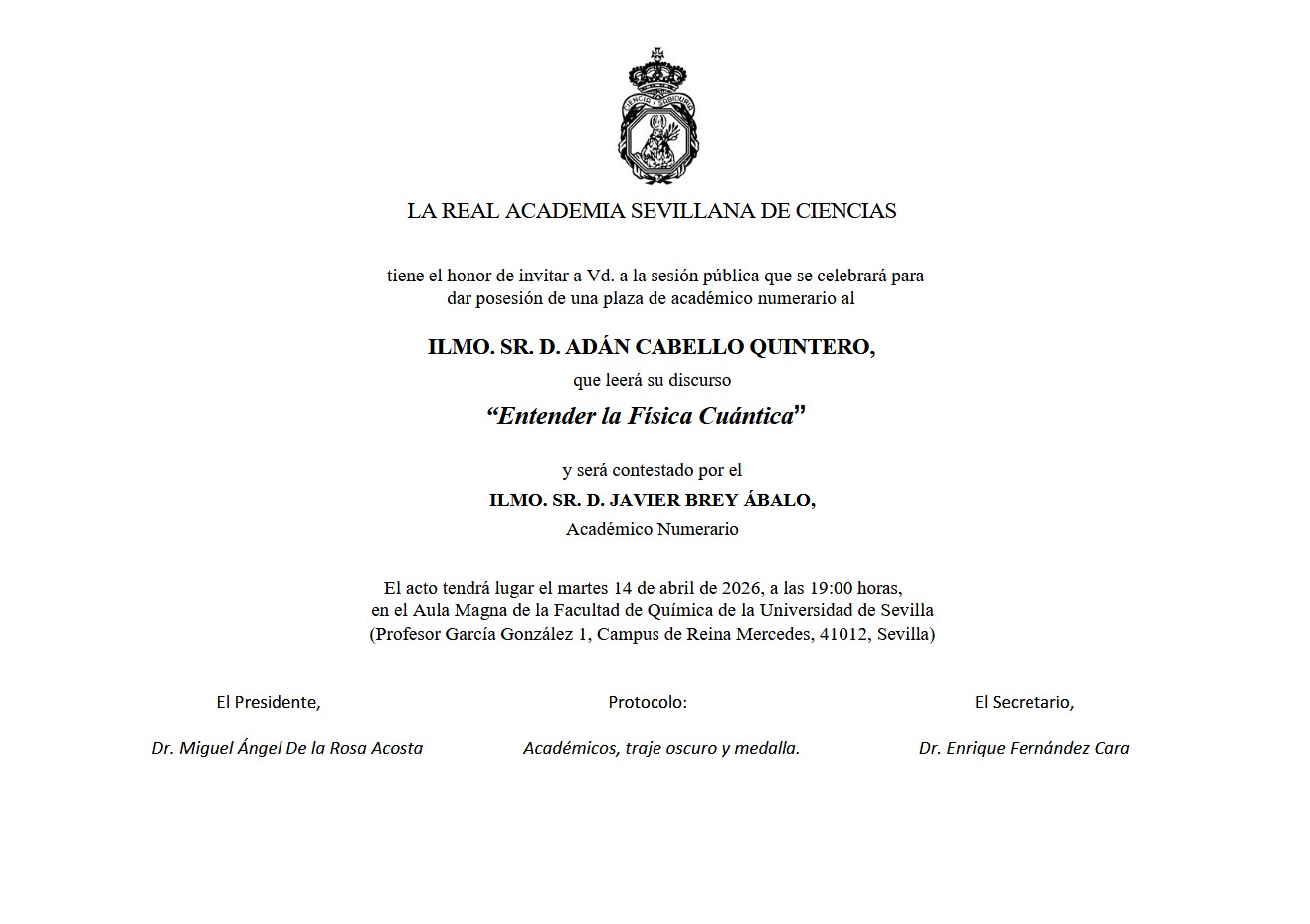 Sesión pública que se celebrará para dar posesión de una plaza de académico numerario al ILMO. SR. D. ADÁN CABELLO QUINTERO